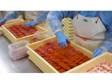 ふくや 味の明太子工場では工場見学をはじめ、明太子作り体験を開催。